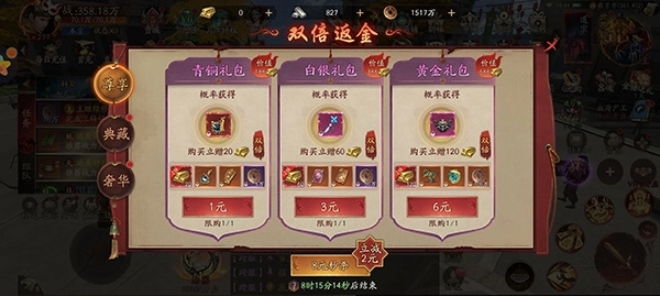 18元直接购买,就能连续7天稳定获取奖励,金锭、各类道具以及助力提升战力的资源全都包含在内,对于想要提升战力却不想投入过多资金的玩家来说,这是个值得考虑的选择。
