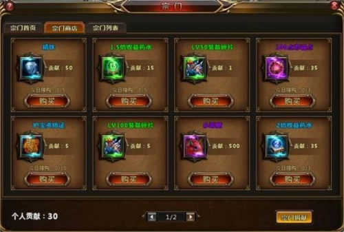 四、宗门商店:在宗门商店中可以通过使用宗门贡献换取各类稀有道具: