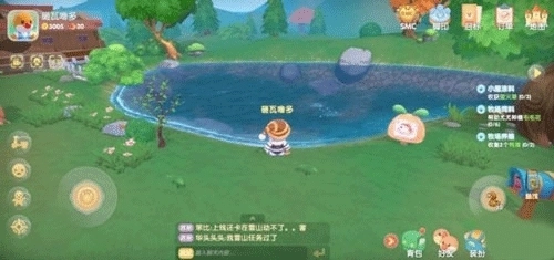 3、买完鱼饵后,来到可以钓鱼的地方,比较常用的钓鱼点在家园,雪山,浆果森林还有开心农场(都是有小溪或者湖泊的地方)