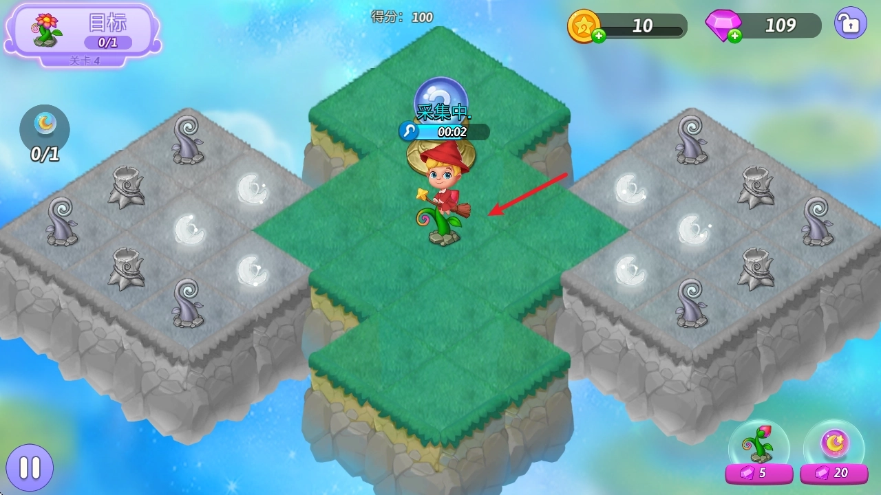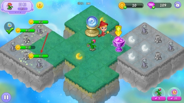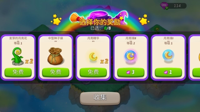 3、每个关卡都设有对应的目标,玩家通过合成操作获取月亮精华后,就能解锁那些被封印的物品。