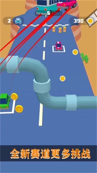 随着游戏的不断推进,新的赛道会一个接一个地解锁,每条赛道都有其独特的设计,正等待着你去探索和征服。