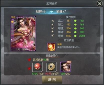 进阶的话,+1+2只需要进阶石,这个石头很多就不说来源了。+3开始就需要同武将的碎片来进阶。+3需要30个、+4需要50个、+5需要100个、+6开始后面每次需要200个。所以个人建议不是超级大R,弄橙将就可以,红将实在是弄不起。但是大家千万别去弄紫将、毕竟基础属性和技能都太差,就算进阶在高也没用。