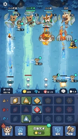 2、每次召唤的咒术都是随机的,不同属性的咒术可以让你自由搭配来完成不同的挑战。