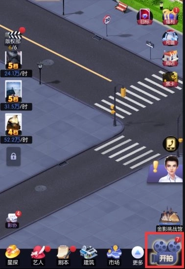 点击开拍后进入选择档位界面,目前有1-7个档位,越高档位收益越高,但相对的拍摄难度也会越高主要集中于对艺人的属性要求。