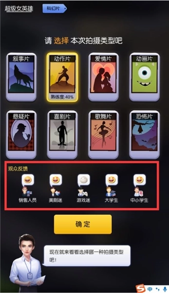 选完角色后就是选择类型了,这个也是会影响你成片出来的票房的,但选择并不难。
