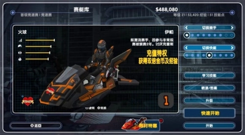 从原则上来说,翻译成火球号这么low的名字,我是拒绝的!作为前期最容易获得的高级赛艇之一,火球号的实用价值名列前茅。在将它性能提升至满级后,加速性能成为了所有赛艇的No·1,没有之一,只凭加速就可以秒杀大部分的赛艇。你指的拥有!
