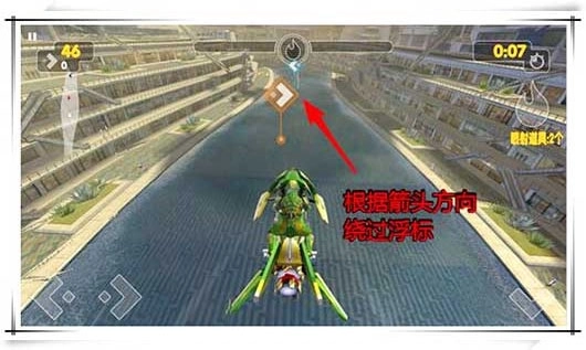 在比赛过程中,通关时间越短,星级评分越高。而更重要的原因,按照浮标提示绕过通过阻碍。大部分萌新就是在这里未按照箭头绕过浮标,导致无法通关。只要我们按浮标箭头方向绕过浮标,这场比赛就稳一大半了!