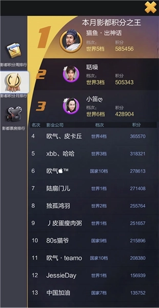 冲榜活动全面升级啦:现在新添了针对不同电影类型(比如科幻片、奇幻片之类)的冲榜挑战!