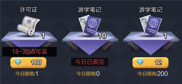 游学记录,活动必需物品,每天通过生产能免费得到40本,通过拍摄掉落可免费获取80本。商店也有售卖,具体为