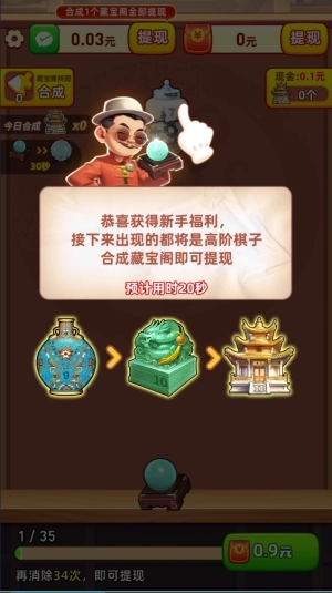 4、这样就能轻松合成出第一个藏宝阁,拿到额外的红包奖励。
