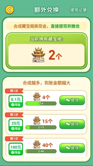 7、合成出的藏宝阁还能直接兑换提现奖励。