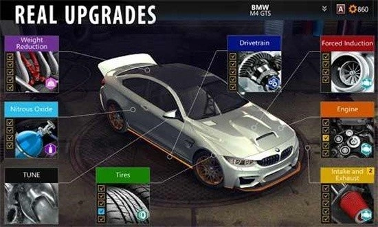 2、购入你心仪的梦想座驾,随心对爱车进行调校升级,然后在1/4或1/2英里的直线加速赛场上,尽情展现你的驾驶技艺!