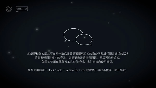 滴答滴答双人冒险是一款制作精良的冒险解密,游戏的设计非常巧妙,玩家需要和自己的好友一起联机游戏,所有的谜题都需要你们两个一起解开。你和你的朋友被困在一个神秘的钟表世界里。随着时间的消逝,你必须解决越来越复杂的难题才能逃脱。合作是关键,因为你们两个都没有完整的画面!在本地或远程两台设备上播放,您只需要一个语音连接,就可以逃出生天了!