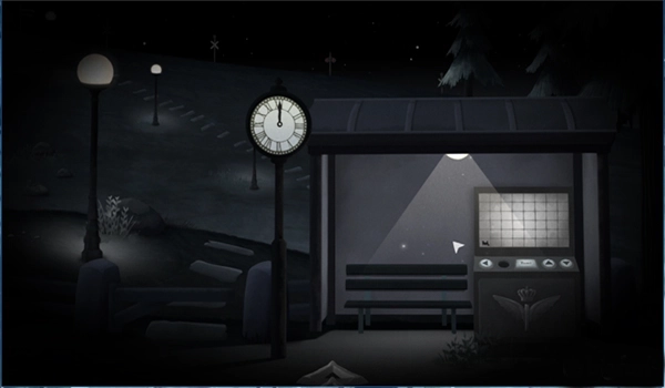 要素:钟和火车路线图。通过观察可以发现,火车的那个机器少了一个按钮→,所以理应先去找这个按钮。不过这个游戏的解谜顺序并没有太大影响,所以我们按照场景从左到右依次来解。
