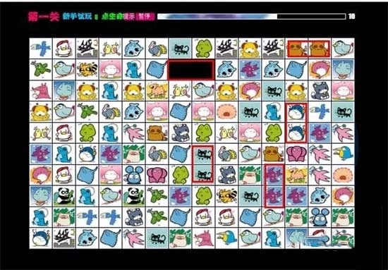 游戏开始以后,玩家可以首先找到一些直接相邻的图案,先点击其中一个,随后是另外一个,将它们消去。
