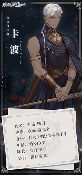 若泽·佛利兹,蔷薇议会的议长,是所有谋求女王陛下恩宠的人,首先要拉拢的对象。他代表白女王接待全国的贵族,不论他们是不是人类,不论在闪耀的王廷还是黑暗的地宫。他沉稳,理智,尽职尽责。无论贵族们对他如何讨好,他都不为所动,正直得近乎死板。直到有一天,他在一个少女身上,看到了未来。