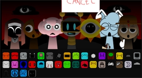 3、sprunki模组的特色是恐怖模式,操作方式为将最后一个黑帽子拖拽到角色身上。