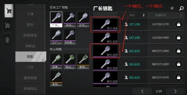 虽然钥匙和食品可以在游戏里摸到,概率也不低,但是对与萌新来说,在哪儿摸都不清楚,反倒是在寄卖市场购买更加方便,钥匙有使用次数,食品有饱食度,要买满的。甚至有人把水喝到只剩2口,上架卖了20万新镑。买卖钥匙和食品的时候注意不要上当受骗!