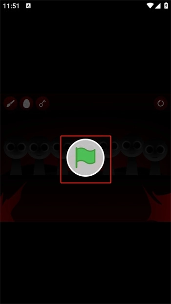 2、画面冲击力拉满,那个表情诡异的黑漆漆小人在屏幕里一直直勾勾盯着你,点击绿色小旗帜就能开启这段诡异之旅。