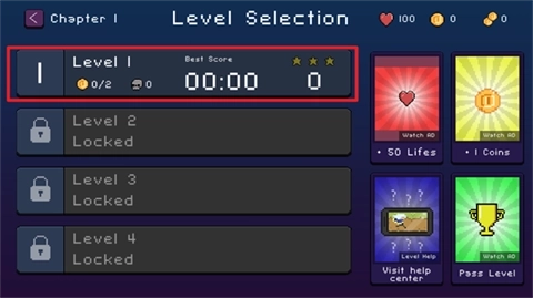 3、游戏包含两个章节与四十余个关卡挑战,你可以在其中和强大的boss展开对决。