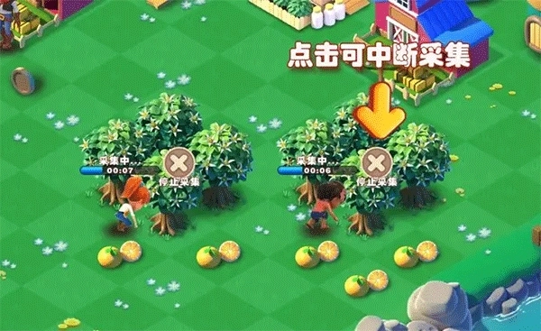7、通过累计合成能够建造出对应的加工类建筑,点击采集提示按钮可引导居民前往田地或物品处获取特殊物品。