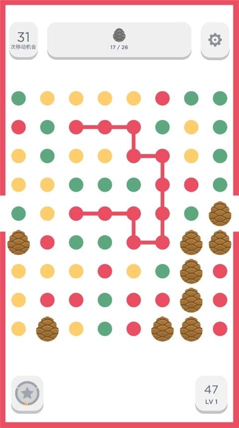 2、你需要通过连接相同颜色的点来完成消除操作,且连线过程中不能出现直角转弯。