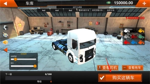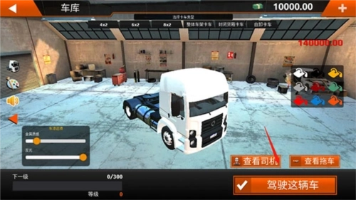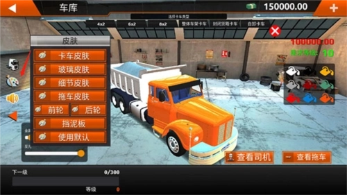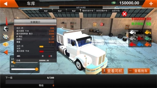 2、进入车库界面,包括4X2、6X2、8X2、自卸卡车、封闭货箱卡车等车型,玩家可以选择自己喜欢的车辆,