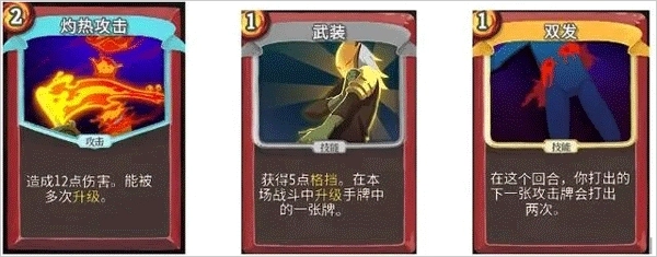 灼热攻击:前期选择好之后,尽量选择篝火多的路线,这张卡可以无限强化。强化次数越多,攻击越高,是杀戮尖塔中单卡输出最高的牌。