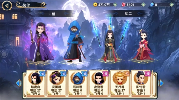 在游戏中共有四种职业角色选择,分别是青霖妖神、月轮玄仙、冥渊魔君和天寰剑君。角色自身的战力主要通过提升等级、学习仙术、穿戴装备和星运提升,每个角色都拥有四种仙术,需要达到对应等级才能够学习,仙术升级受角色等级影响,修士可通过主线任务和冒险关卡快速提升角色等级,获得基础属性提升。