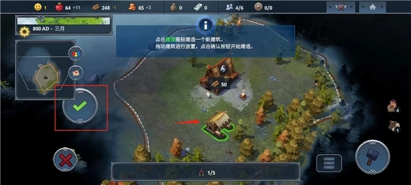 6、然后拖动建筑进行放置,点击确认按钮就可以开始建造;