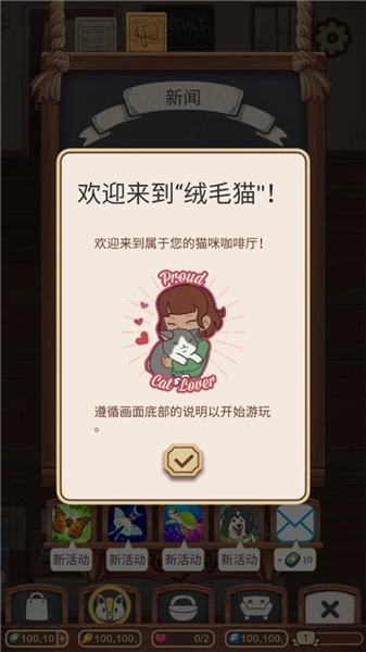 咖啡厅里有每日任务,完成任务的次数,拿到的道具也是很多的,游戏行为当中我们会获得箱子,也要解锁,计时完成记得打开,这些货币都能提升我们的经营水平,可以升级猫咪,购买家具。