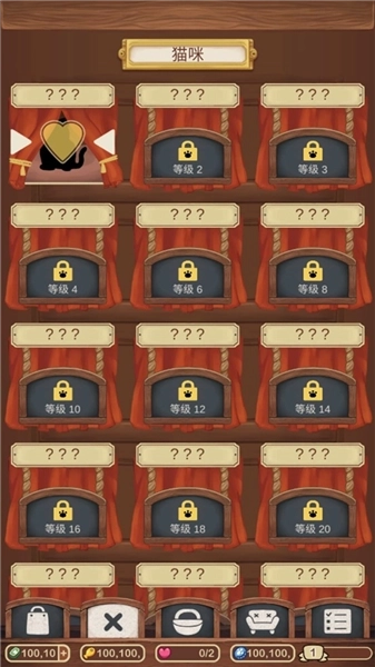 随着我们和顾客的互动,每次完成订单,开箱子,我们会积累经验,可以让我们升级,升级之后会有货币,同时猫咪会开放位置,我们可以去拥有新的猫咪了。