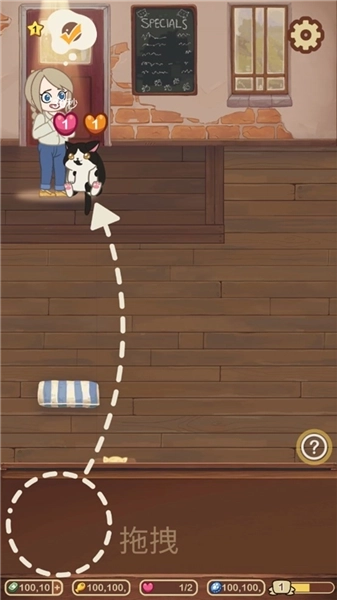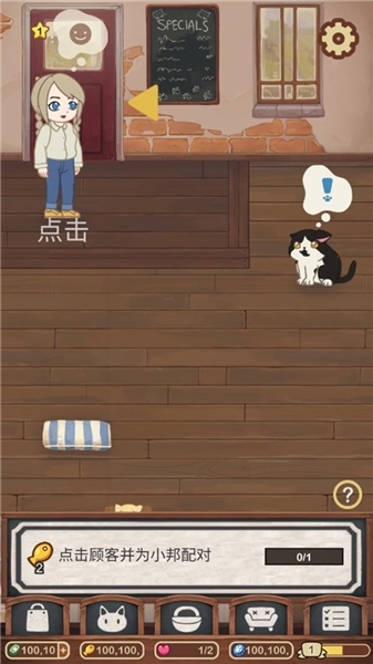 顾客来了之后,我们可以点顾客的叹号(下方会跳出来适合匹配、配对的猫咪)然后猫咪移动到顾客那边去,进行配对,他们会玩玩耍(点击会有时间计时)结束你就可以拿钱了。