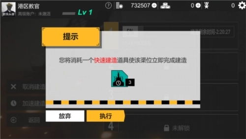 为了节省时间,这次我们会用快速建造道具来立刻完成这艘战舰的建造。快速建造指令既能通过每日任务获取,也能直接在军需处购买。
