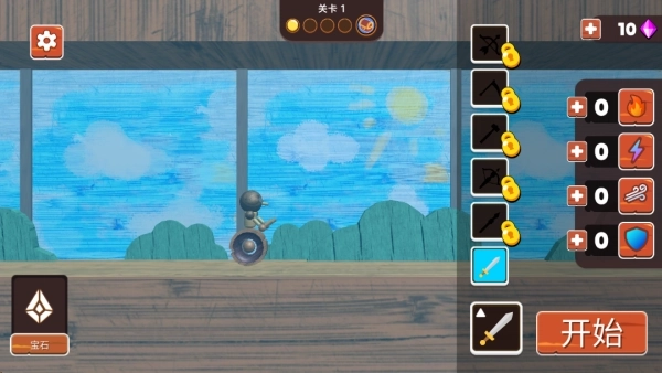 2.能够切换各类不同的武器来挑战关卡。一切准备就绪后,点击右下方的“开始”按钮就可以了。