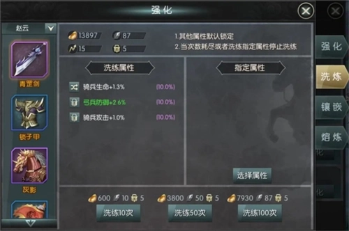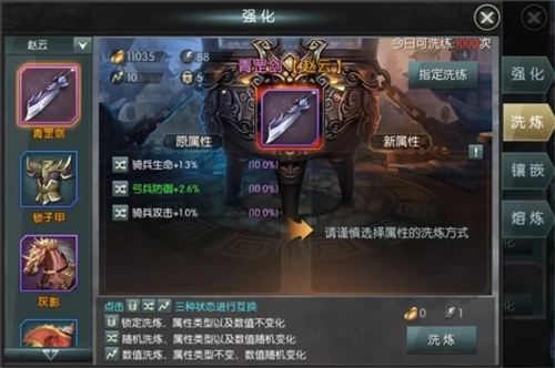 装备的洗炼有三种形态:锁定洗炼、随机洗炼、数值洗炼