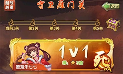 每关有难(死战)、中(力战)、易(战)3组敌人给玩家选择。可根据自身实力及阵容偏向任选1组敌人,打赢即通过了此关。