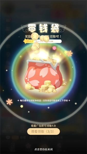 这个零钱袋的位置比较显眼,就在界面右上角,玩家点击它后,观看广告就能获得友枝币,每天最多能领取三次。