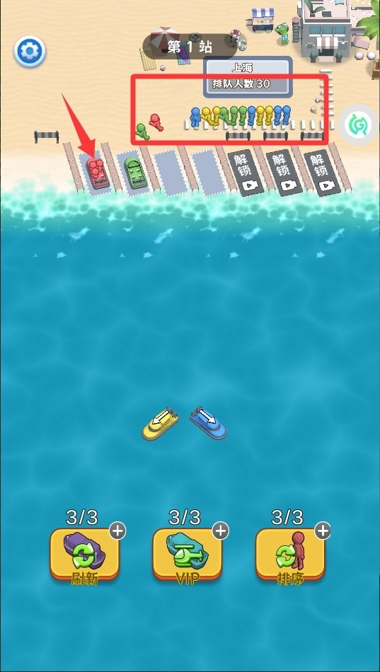 1、基础移动操作。点击选中摩托艇,滑动指定移动方向。观察整体布局寻找关键"枢纽"载具,优先移动它们。