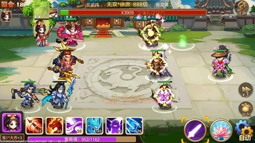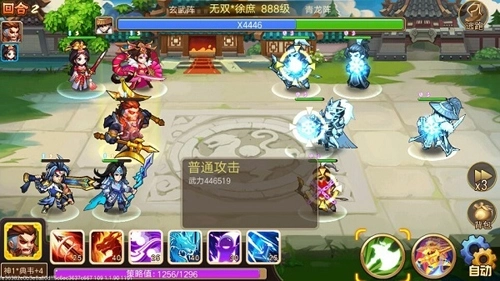 1.第一回合。因为对面群攻秒杀能力强,因此选择全员闪避。多次试验,等待多人闪避的情况发生,此时可放多个冰龙。最后注意重点关照谋士,可多个冰龙,不中他时用封技,切不可先用封技。谋士第一回合结束必须控住,因为谋士只会放秒杀技能,不会普攻,其他人都有可能放普攻。