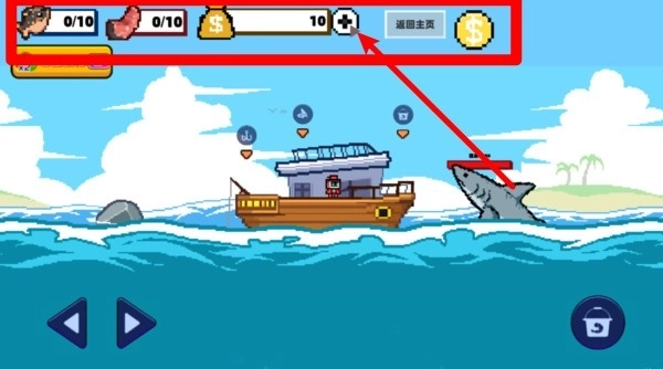 1.开始游戏按钮:在进入海上冒险前,点击“开始游戏”即可启程,驾驶渔船驶向海域,迎接紧张刺激的钓鱼挑战。