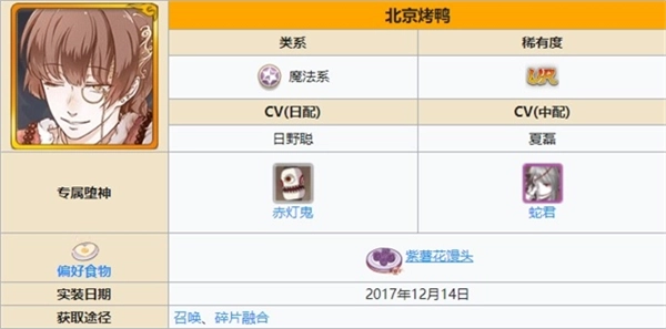 评价:依旧是一名强力的控制,但与鹅肝不同,烤鸭是沉默控制,同样也有第一沉默控制的美称,但依旧要求有+12及以上的土爆,技能出色,aoe比较足,而且也比较的好养,对萌新比较友好。