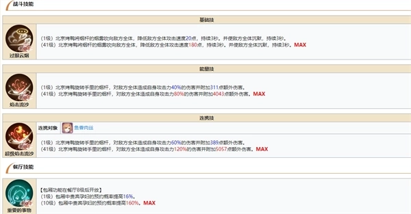 评价:虽然不太好养,但是作为肉来说,看这技能你就明白,他可是可以被称为防御系一哥的存在,而且比较好满破,用起来手感非常的棒,不过这是在后期养起来的情况下,萌新的优先度就不算高了,但是是真的肉!非常的肉!肉到绝望!
