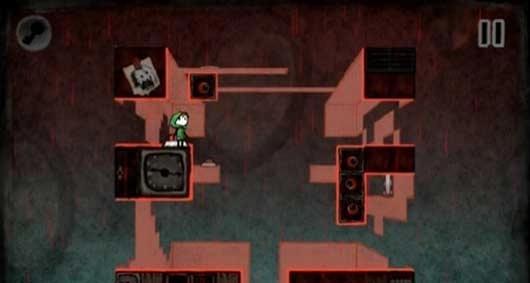 6、第三个场景踩下按钮以后从左边跳下来,落到左上的平台上,然后沿路前进进入门内解开顺利过关。