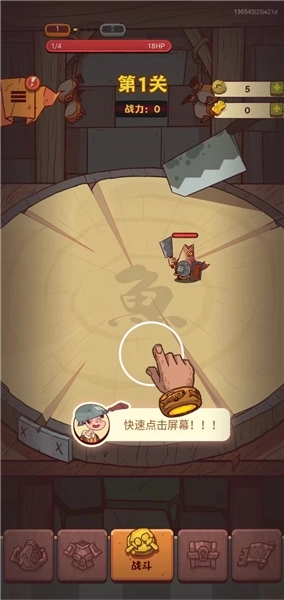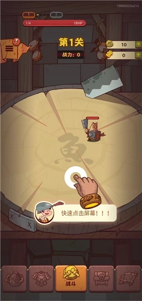 4、然后回到战斗页面,快速点击屏幕攻击敌人,收集它们掉落的金币,继续升级自己以应对更强的咸鱼们;