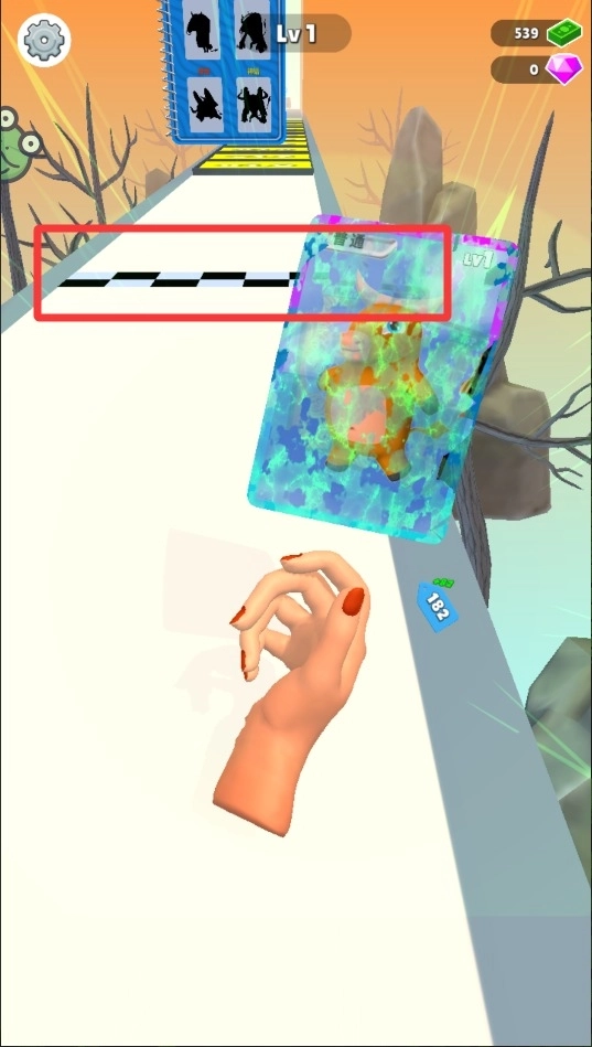1、极速冲刺,在直线赛道上控制卡牌怪兽全力奔跑。灵活躲避障碍物,收集沿途钻石和卡牌碎片。