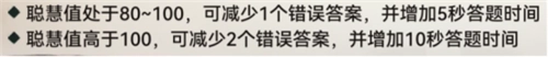 参加文斗擂台活动时,若参与弟子的聪慧值达到80或100,便能直接排除1个或2个错误答案。因此,我们也可以将参与弟子设定为掌门或戒律长老,试着借助+5点聪慧的加成来满足排除答案的条件。