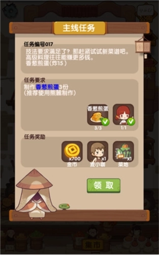 最主要的主线任务就是需要“经营”饭店,需要玩家制作某道菜,几个品级的菜,或者是使用某种技能炒菜,使用特定的厨师做菜……经营内容丰富多样,帮助玩家进一步提升自己的技能,吸引客人来客栈吃饭。