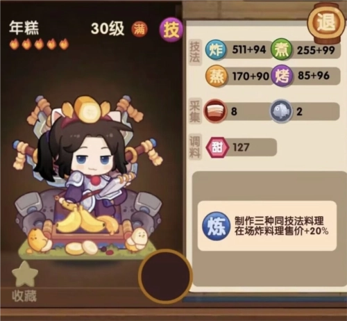 技能:制作不少于22份的料理该料理售价+50%