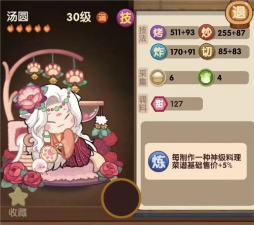 技能:烤类料理售价+40%